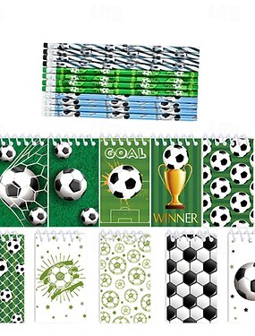 22-osainen jalkapalloaiheinen kirjepaperisetti, 10 minivihkoa &12 kynää lapsille, urheiluteemaisia syntymäpäivälahjoja, jalkapalloherkkupussien täyteaineita, koulupalkintoja, luokkahuonepalkintoja