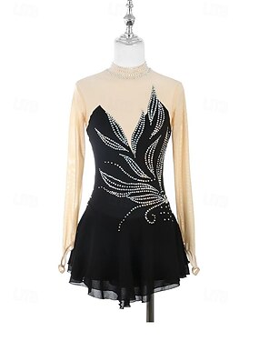 Taitoluistelupuku Naisten Tyttöjen Luistimet Hameet Musta Tilkkutäkki Avoin selkä Silmukka Spandex Elastinen Kouluts Harjoittelu Ammattilainen Luisteluasu Pidä lämpimänä Kristalli / Strassi