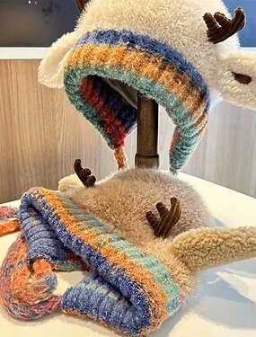 Lasten joululakki ja -huivi setti, pehmeää neulosta poro- ja puukuvioilla, lämpimiä talviasusteita pojille ja tytöille, täydellinen loma- ja joulujuhliin