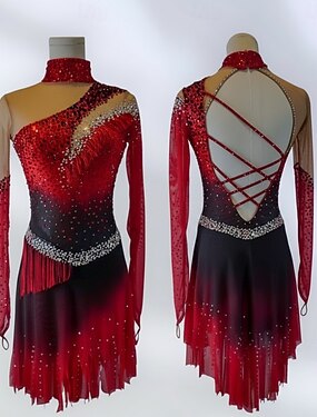 Taitoluistelupuku Naisten Luistimet Hameet Punainen Tilkkutäkki Avoin selkä Spandex Silmukka Erittäin elastinen Kouluts Kilpailu Luisteluasu Klassinen Kristalli / Strassi Pitkähihainen Luistelu