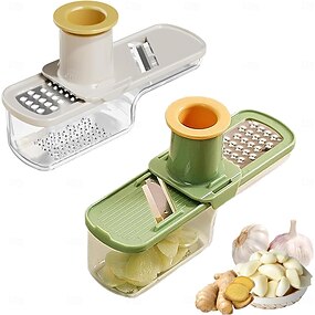 3-in-1 valkosipulinmurskain, viipaloija, lihamylly &lihamylly, kestävä muovinen monitoimikone kahvalla &Kompakti monikäyttöinen lukko valkosipulille, vihanneksille, lihalle ja juustolle