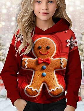 joulu Tyttöjen 3D Kuvitettu Lumihiutale Piparkakut miehet Huppari Pitkähihainen Syksy Talvi Muoti Ihana Perus Lapset 4-12 vuotta Hupullinen ulko- Kausaliteetti Päivittäin Normaali