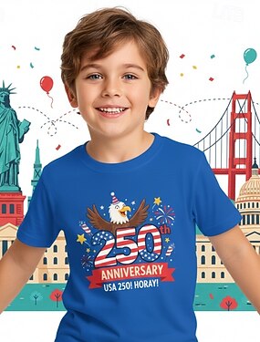 Poikien 3D Kuvitettu 250-vuotisjuhla T-paita Lyhythihainen 3D-tulostus Kesä Kevät Urheilu Muoti Katutyyli Lapset 4-12 vuotta Tiukka pyöreä kaula-aukko Kausaliteetti Päivittäin ulko- Normaali