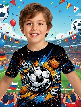 Sukupuolineutraali 3D Kuvitettu Jalkapallo T-paita Lyhythihainen 3D-tulostus Kesä Kevät Urheilu Muoti Katutyyli Lapset 4-12 vuotta Tiukka pyöreä kaula-aukko Kausaliteetti Päivittäin ulko- Normaali