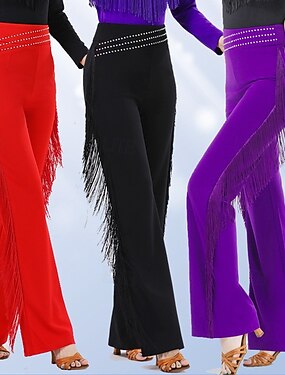 latinalaisen tanssin juhlatanssihousut hapsuiset tupsut rypyttelevät puhdasta väriä naisten suorituskykyharjoittelu korkea polyesteri