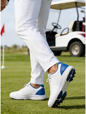 Miesten valkoiset suorituskykyiset golfkengät, kevyt verkkomateriaali, mukava istuvuus, liukumaton pohja, täydelliset golfkentälle ja ulkoiluun