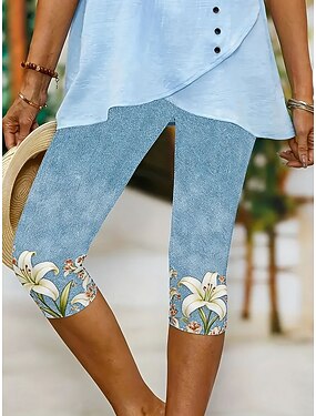 Naisten Caprihousut Leggingsit Mukavat leggingsit Katutyyli Vapaa-aika Vasikka-Length Luonnollinen Kukka Painettu Mukava Ulkoilu ulko- Loma Rento / arki Keltainen Sininen Kesä Normaali