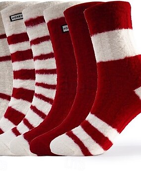 Talviset lämpösukat naisille, paksut pörröiset puuvillaiset miehistön sukat pehmeällä vuorella, lämpimät punaraidalliset sisälattiasukat, mukavat kotiunisukat kylmään säähän