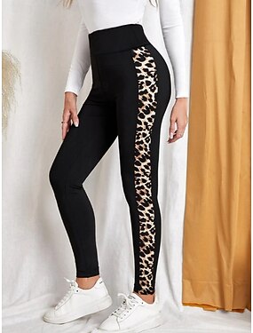 Naisten Housut Leggingsit Loma Muoti Katutyyli Täyspitkä Korka vyötärö Leopardi Tasku Joustava vyötärö Mukava Erittäin elastinen ulko- Jooga Urheilu Musta Kevät Syksy Tyköistuva