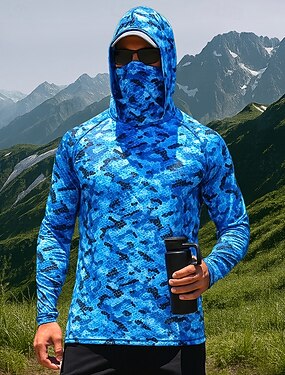 Miesten Kauluspaita vaellukseen Kalastuspaita UV-suojapaita Pitkähihainen Hupullinen Topit Ulko- UV-aurinkosuojaus Hengittävä Kevät Syksy Polyesteri Armeijatyyli Sininen Kalastus Matkailu Juoksu