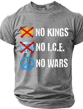 miesten ei kuninkaita, ei jäätä, ei sotia, rauhanmerkki, kruunu, jää, poliittinen protesti, lausunto, vallan vastainen, urbaani katumuoti, t-paita, graafinen, rento, lyhythihainen, arkivaate, ralli,