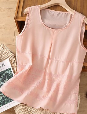 Naisten Puuvillainen pellava liivi Kesän yläosat Pusero Rypytetty Tilkkutäkki Kirjailtu Yhtenäinen väri Tyylikäs naiset Klassinen Hihaton U kaula-aukko Tavalliset topit Päivittäin Työ Bile Valkoinen