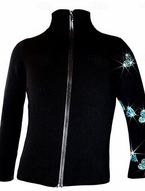 taitoluistelu fleecetakki naisten tyttöjen luistelutakki toppi musta joustava harjoituskilpailuluisteluasu lämpö lämmin kristalli/strassi pitkähihainen luistelu taitoluistelu