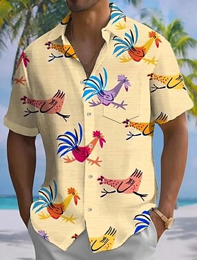 Miesten Eläin Kukko Hauska Paita Havaiji paita Button Up paita Lyhythihainen Havaijilainen Loma Pyhäpäivä Ranta-asut Kesä Kevät Sänkyjen avaus 3D-tulostus kauluspaidat Edessä yksi tasku Keltainen