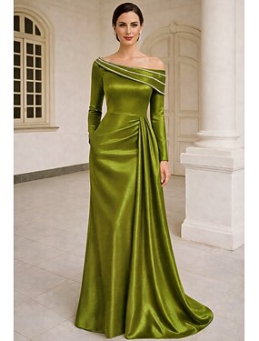 A-linja Tuubi Kokopitkä Helmillä koristeltu Muodollinen mekko Morsiamen äidin mekko Iltapuku Tanssiaispuku hameen päällä Muodollinen mekko Tyylikäs Kimalteleva Juhlatyyli Pitkähihainen Yksiolkaiminen