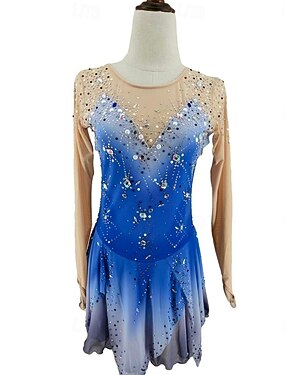 Taitoluistelupuku Naisten Tyttöjen Luistimet Hameet Sininen Tilkkutäkki Peukalonreikä Spandex Erittäin elastinen Kouluts Ammattilainen Kilpailu Luisteluasu Klassinen Kristalli / Strassi Pitkähihainen