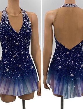 Taitoluistelupuku Naisten Luistimet Hameet Laivasto Tilkkutäkki Avoin selkä Elastinen Kouluts Kilpailu Luisteluasu Klassinen Kristalli / Strassi Hihaton Luistelu Taitoluistelu