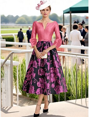 A-linja Polven yli Cocktailmekot Juhlamekot Leveä mekko Tyylikäs 3/4 hiha V kaula-aukko Puutarhajuhlat Häät Satiini kanssa Rusetti(rusetit)