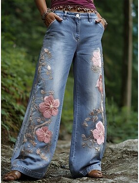 Naisten Kuvitettu Leveä reisi Kiinalainen Loma Vintage Muoti Täyspitkä Korka vyötärö Kukka Tasku Tulostus Mukava Pehmeä Mikrojoustava ulko- Loma Katu Sininen Kevät Syksy Talvi Loose Fit