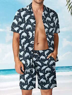 Miesten Delfiini 2kpl Paidat Setit Kesän yläosat Lyhythihainen Lyhyet housut Sänkyjen avaus Loma Kausaliteetti Rantaloma 3D-tulostus Kesä Punarinnan munan sininen