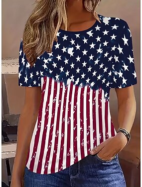 itsenäisyyspäivän patrioottinen naisten T-paita graafinen lippu vintage muoti tyylikäs lyhythihainen pyöreäkauluksinen säännölliset hupparit päivittäin viikonloppu värikäs painatus punainen sininen