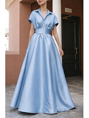 A-linja Kokopitkä Iltapuku Muodollinen mekko Tyylikäs Päivittäin Silkkinen Lyhythihainen Paitapuserokaula-aukko Häät Muodollinen Satiini kanssa Rypytetty