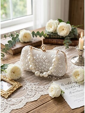Naisten Kytkin Evening Bag Kukkaro Kytkinlaukut Nahka Hiekkaranta Juhla Polttarit Helmikoristelu Ketjuilla Yhtenäinen väri Geometrinen Valkoinen Beesi