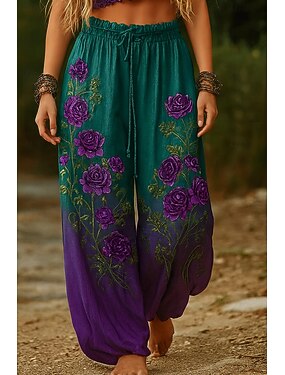 Naisten Housut Haaremihousut Etninen Boheemi Täyspitkä Keskivyötärö Kukka Joustava vyötärö Mukava Hengittävä Mikrojoustava Katu Arki-asut Bile Sininen Sininen Apila Khaki Kesä Normaali
