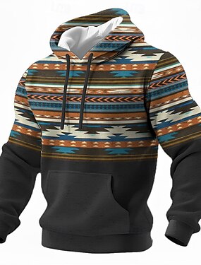 Miesten Kuvitettu Tribaali Kantri Huppari Hupparit College Päivittäin Etninen Vapaa-aika Vintage retro Pitkähihainen Hupullinen Loma Urheilu ja ulkoilu Pyhäpäivä Katuvaatteet Sininen Ruskea Khaki