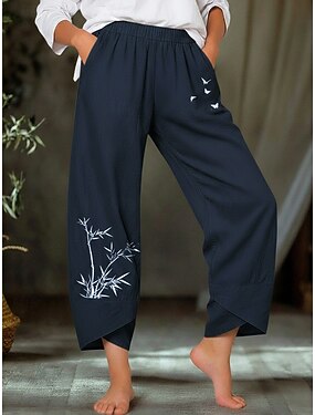 Naisten 100% Cotton Housut Kevyt Vapaa-aika Nilkkapituinen Matala vyötärö Graafiset tulosteet Tasku Hengitettävyys Mukava Joustamaton Rento / arki Viikonloppu Laivastonsininen Musta tuhkanvärinen