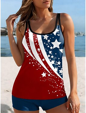 Amerikan itsenäisyyspäivä naisten uimapuku tankini 2-osaiset alushousut uimapuku selkäpuoli loma ranta-asu graafinen U-kaula-aukkoinen hihaton uimapuku