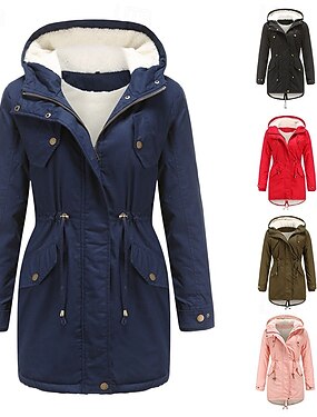 Naisten Talvitakki Huppari takki Anorakki Pidä lämpimänä Mukava Vetoketju Tasku Aktiivinen Vapaa-aika Tavallinen ulko- Loma Arki-asut Bile Pitkä Hupullinen Normaali Pitkähihainen Päällysvaatteet
