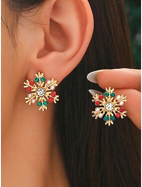 Naisten jouluiset lumihiutalekorvakorut – metalliseosta ja tekohelmiä, juhlavia punaisia, vihreitä ja kirkkaita kiviä, täydelliset juhlajuhliin ja lahjoihin