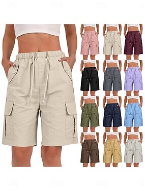 Naisten Bermudan shortsit Vohveli Veryttelyhousut Kiinalainen Loma Muoti Katutyyli Lyhyt Korka vyötärö Tavallinen Mukava Pehmeä Joustamaton Päivittäin ulko- Katu Musta Khaki Armeijan vihreä Aprikoosi