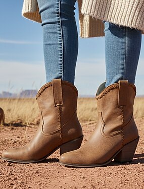 miesten vintage-ruskeat tekonahkaiset nilkkurit western-saappaat - tuskainen viimeistely punotuilla yksityiskohdilla, mukava lohkokorko arki- ja ulkokäyttöön