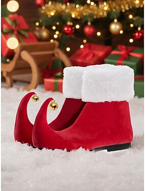 Naisten punaiset joulutonttukengät kierretyllä kärjellä ja kulkusilla – juhlavat lomapukukengät juhliin ja cosplayhin