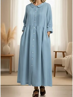 Naisten Polvipituinen mekko Farkkumekko Rento mekko A linjainen mekko Muoti Perus Päivittäin ulko- Loma Normaali Tavallinen Pitkähihainen Paitapuserokaula-aukko Vaalean sininen Kesä Kevät