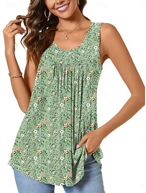 Naisten Pusero Rypytetty Painettu Kukka Aktiivinen Vapaa-aika Hihaton Tiukka pyöreä kaula-aukko Pitkät topit Päivittäin Pyhäpäivä Bile Vaalean vihreä Taivaan sininen Kesä Kevät