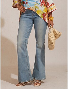 Naisten Farkut Bell Bottom Katutyyli Vapaa-aika Täyspitkä Keskikorkea vyötärö Tavallinen Tasku Joustava vyötärö Mukava Erittäin elastinen Päivittäin ulko- Loma Sininen Kevät Syksy Tyköistuva