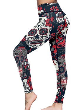 Naisten Leggingsit Sports Gym Leggings Joogahousut Spandex Punainen Talvi Pyöräily Sukkahousut Leggingsit Pääkallot Vatsatuki Peppua kohottava Vaatteet Vaatteet Jooga Kunto Kuntosaliharjoitus Juoksu