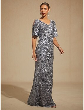Naisten Maksimekko Kotelomekko Trumpettimekko merenneitomekko Tyylikäs Kylmä olkapää Iltajuhlat Paljetti Pitsi Kirjailtu Normaali Kukka Puolihiha V kaula-aukko Harmaa