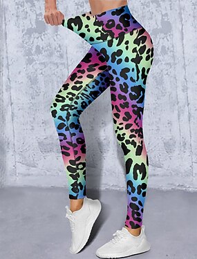 Naisten Sports Gym Leggings Joogahousut Korka vyötärö Spandex Sininen Talvi 3/4-pituiset leggingsit Leopardi Vatsatuki Peppua kohottava Vaatteet Vaatteet Jooga Kunto Kuntosaliharjoitus Juoksu