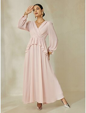 Naisten Morsiusneito mekko Coctail-asu Häävieraspuku Punastuvan vaaleanpunainen Pitkähihainen Yhtenäinen väri Röyhelö Kääri Virtaava 봄 & Syksy Tyylikäs Juhla S M L