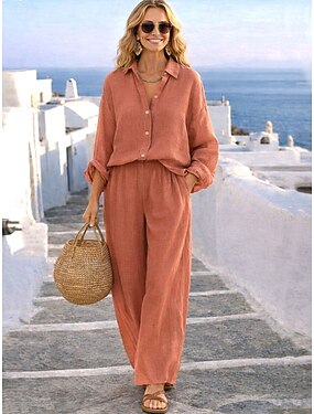 Naisten Housusarjat Pitkähihainen Paitapuserokaula-aukko Yhtenäinen väri Muoti Katutyyli Kausaliteetti Päivittäin ulko- Oranssi Kesä Loose Fit