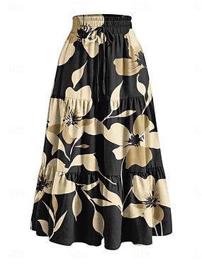 Naisten elegantti maksihame korkea vyötäröinen hame kukkakuvio geometrinen rypytetty kuvio laskeutuva joustamaton bile rento päivittäin sininen musta punainen taivaansininen kesä