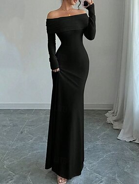 Naisten Pitkä mekko Maxi mekko Musta mekko Kotelomekko Tyylikäs Muoti Moderni Päivittäin Toimisto Juhla Normaali Tavallinen Pitkähihainen Olkaimeton Musta Valkoinen Punastuvan vaaleanpunainen Viini