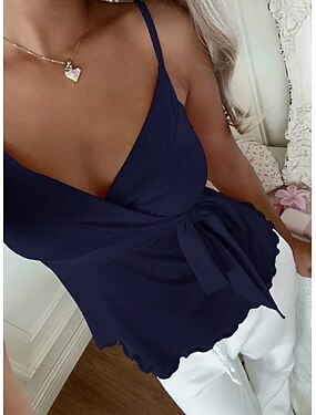Naisten Camisole Tank Top Röyhelö Nauhanreikä Tavallinen Päivittäin Vapaa-aika Hihaton V kaula-aukko Tavalliset topit Päivittäin Valkoinen Keltainen Punastuvan vaaleanpunainen Apila Vaalean sininen