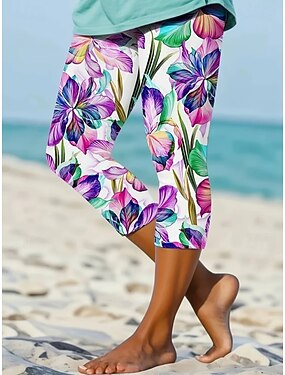 Naisten Ohut Leggingsit Loma Klassinen tyyli Perus Vasikka-Length Capris Luonnollinen Kukka Kuvitettu Painettu Mukavuus Ulkoilu Hengittävä Elastinen Kausaliteetti Päivittäin Sisällä Sininen Violetti