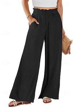 Naisten Leveä reisi Housut Katutyyli Vapaa-aika Täyspitkä Luonnollinen Tavallinen Tasku Joustava vyötärö Pehmeä Pyhäpäivä Arki-asut Viikonloppu Aprikoosi Musta Khaki Syksy Normaali