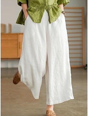 Naisten Keinopuuvillainen pellava Housut Rento arki Vasikka-Length Tavallinen Tasku Hengitettävyys Mukava Joustamaton Bile Viikonloppu Musta Valkoinen Keltainen Sininen Kevät kesä Normaali